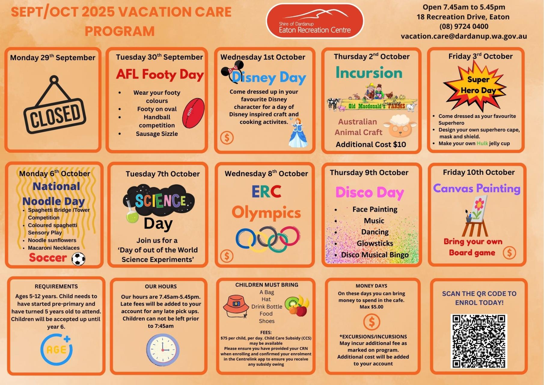 - Bookings for our Program will open on Monday 8th September, bookings before this date will be refused